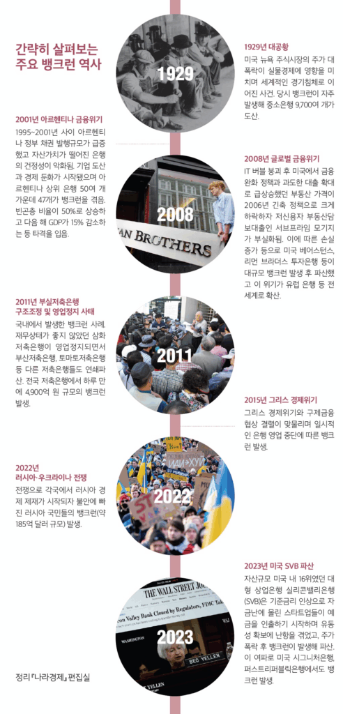 - 한국에서도 2010년대 저축은행 부실 사태 당시 여러 저축은행에서 대규모 인출이 발생한 바 있습니다. 40대 중년아재 일기+1